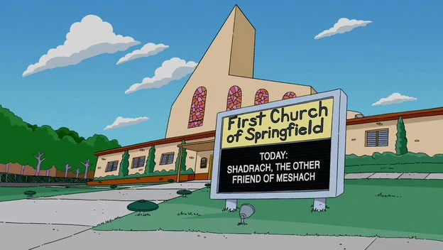 Religion and faith play a large role in Springfieldian society. The largest church community appears to be the First Church of Springfield, a Presbylutheran church headed by Reverend Timothy Lovejoy. There is also a synagogue (led by Rabbi Hyman Krustofsky), a mosque, a Catholic church (The Notre Dame of Springfield), an Episcopal church (with vibrating pews), a crystal cathedral, the Cathedral of the Downtown, and a Buddhist temple. Apu, a Hindu, has a statue of the god Ganesh in the Kwik-E-Mart.