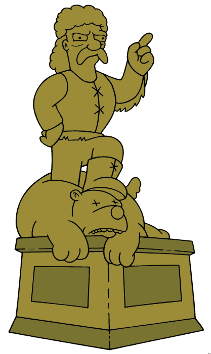 The second (or official) founder of Springfield was pioneer Jebediah Springfield, widely celebrated in the town as a brave and proud American hero. He famously once killed a bear with his bare hands, and this deed is immortalized in a bronze statue in front of the city hall. However, revisionist historians have since determined that the bear in fact probably killed Springfield, and not vice-versa. The town motto "a noble spirit embiggens the smallest man" is attributed to Jebediah. Lisa Simpson later discovered that Jebediah Springfield was, in fact, Hans Sprungfeld, a murderous pirate, and enemy of George Washington, but eventually suggested that the myth of Springfield should be preserved for the inspiration it gives to people and did not reveal her findings.[10]