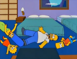 At the hotel, Homer discovers that the Japanese are years ahead of America, having a talking toilet in the bathroom that sprays fountains of multi-colored water, while Bart discovers the TV has a camera that shows footage from the toilet. This gadget soon appalls Bart, Lisa and Marge, as Homer makes use of the multi-gadget toilet.